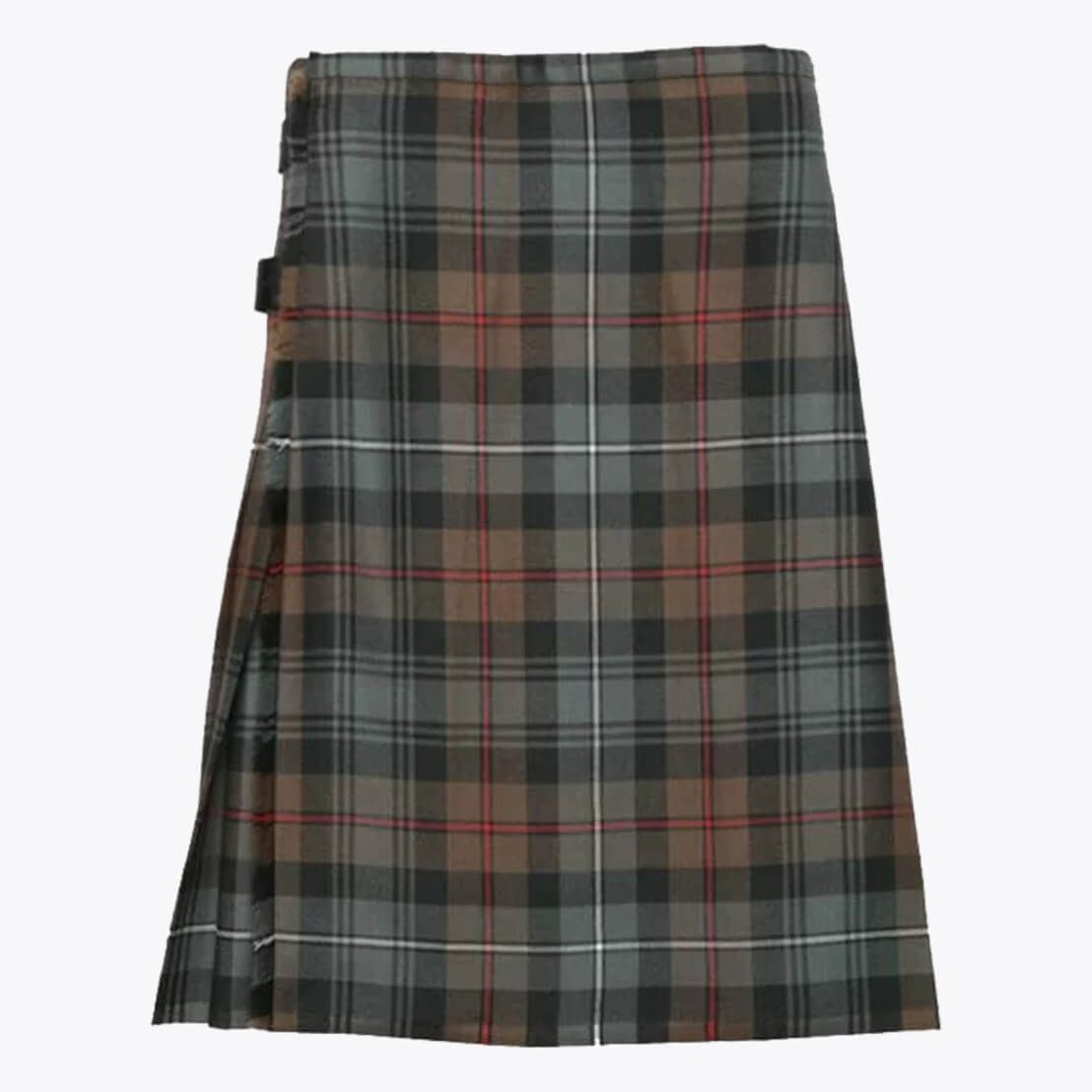 Each tartan kilt has 3 buckles and straps for size adjustment: genuine leather waist straps (4" long by 1 1/4" wide). Kilt straps on this kilt are set with an allowance of 2" looser. This kilt's front edge has fringe and is pleated to the sett but can be pleated to stripe by request. There are two belt loops at the back. The kilt has a 100% cotton lining for a soft feel when being worn. The standard kilt comes with a 5-yard, but you can convert it into an 8-yard by selecting the "8-yard kilt" option.