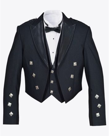 The prince charlie jacket is a formal wear that orginates in 19th century. This is inspired from Victorian-era military dress. It was named after Prince Charles Edward Stuart, and also known as Bonnie Prince charlie. This jacket features a short cut, satin lapels, and decorative silver buttons. Our Prince Charlie jackets and vests are designed to allow you to show off your kilt and highland wear with pride. Now a days this formal jacket is dresses up with kilt, waistcoat and bow tie. The modern prince charlie remains as symbol of Scottish elegance and heritage. This is used for formal and evening events.