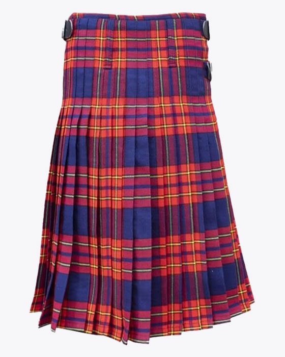 Each tartan kilt has 3 buckles and straps for size adjustment: genuine leather waist straps (4" long by 1 1/4" wide). Kilt straps on this kilt are set with an allowance of 2" looser. This kilt's front edge has fringe and is pleated to the sett but can be pleated to stripe by request. There are two belt loops at the back. The kilt has a 100% cotton lining for a soft feel when being worn. The standard kilt comes with a 5-yard, but you can convert it into an 8-yard by selecting the "8-yard kilt" option.