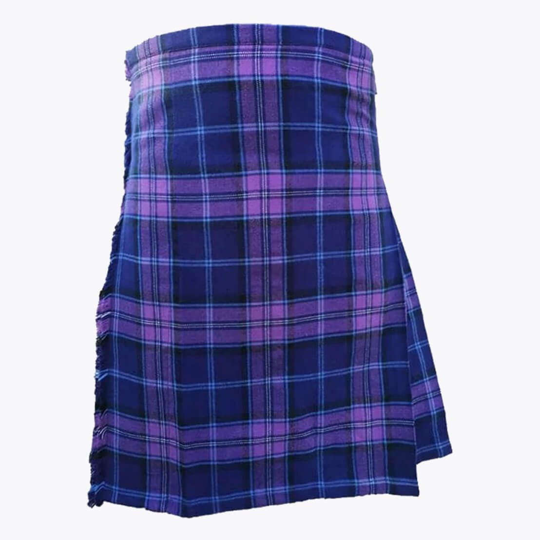 Each tartan kilt has 3 buckles and straps for size adjustment: genuine leather waist straps (4" long by 1 1/4" wide). Kilt straps on this kilt are set with an allowance of 2" looser. This kilt's front edge has fringe and is pleated to the sett but can be pleated to stripe by request. There are two belt loops at the back. The kilt has a 100% cotton lining for a soft feel when being worn. The standard kilt comes with a 5-yard, but you can convert it into an 8-yard by selecting the "8-yard kilt" option.